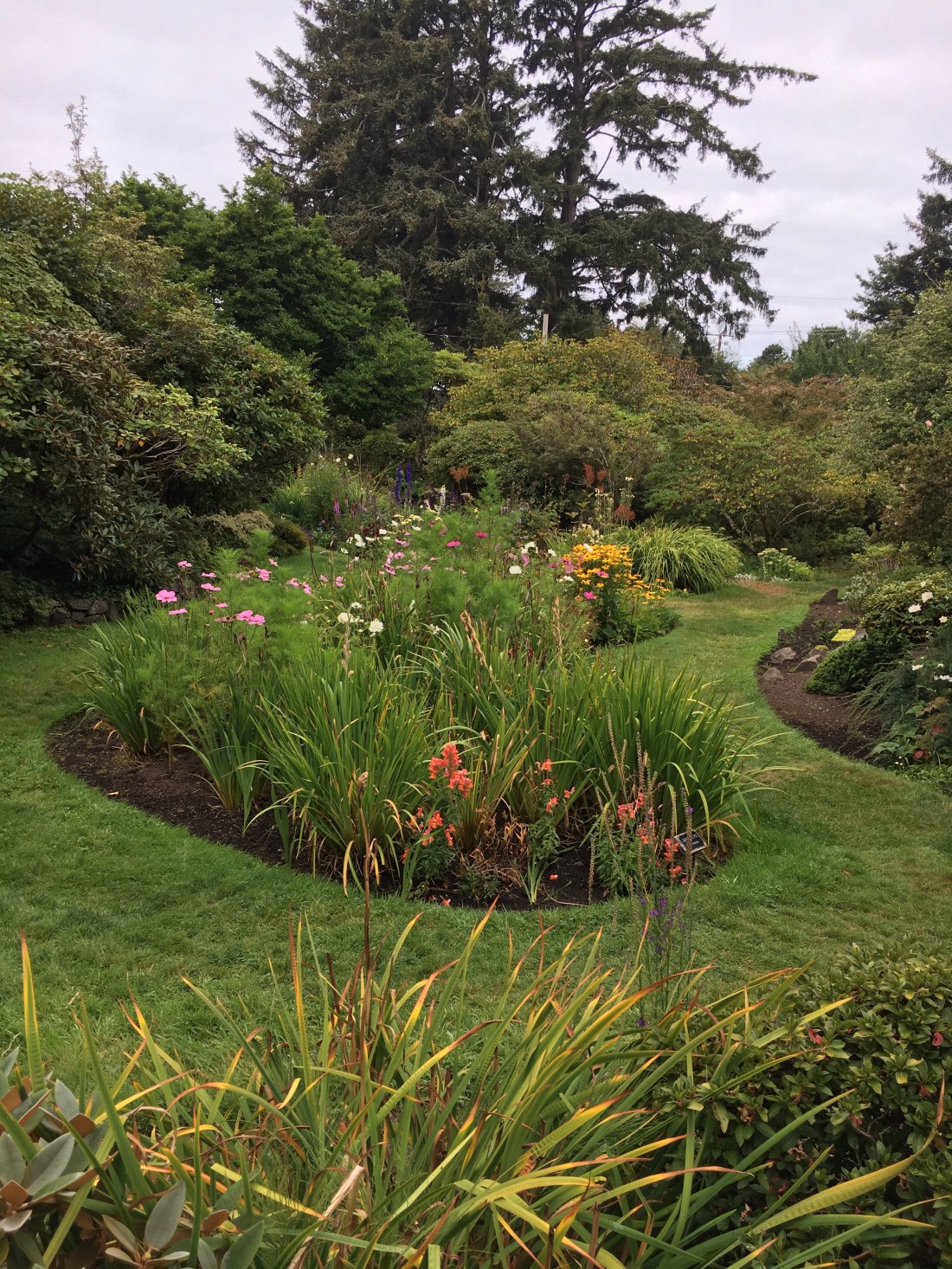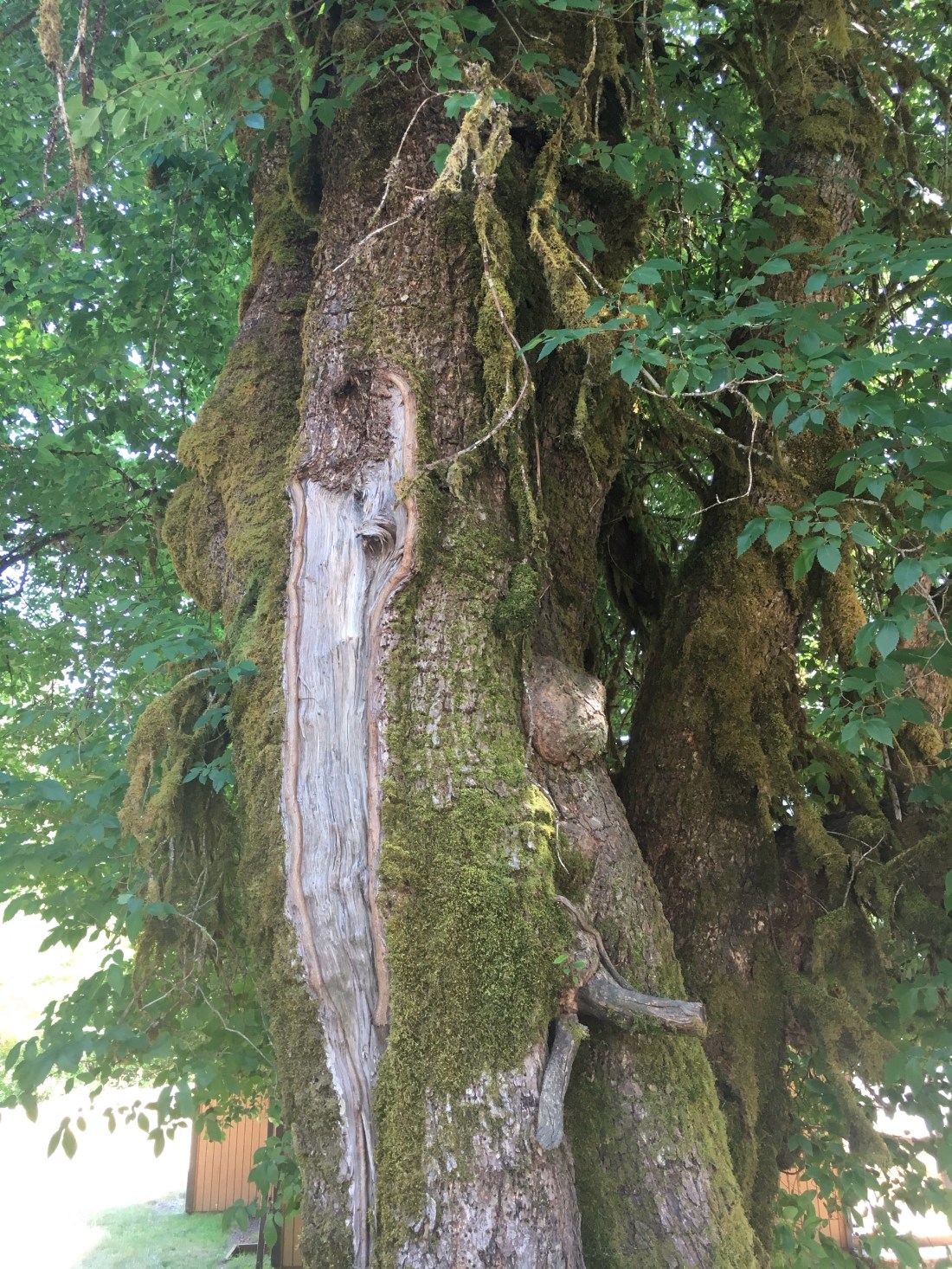 Tolovana State Beach, OR above. We continued to drive south, crossing the imposing Columbia River into Oregon. Then we stopped along the scenic coast, exploring towns like Seaside, Cannon Beach, Tillamook, Agate Beach, and Newport and many beautiful bays, beaches and cliffs. Seaside attracts families with its merry-go-round, bumper cars, and arcade. Cannon Beach targets the older set with its upscale boutiques. Garibaldi is for fishing. Tillamook has a major creamery, maker of famous cheddar, that offers tours and samples. We skipped it but enjoyed people-watching from across the street. The Oregon Coast, in contrast to the Washington coast, has protected beaches but lots of development next to them. The recreational boaters in Washington frequent Puget Sound, not the Pacific. In Oregon the coast has many bays, deltas, and rivers that appeal to boaters and fishermen. The soil looks sandy and volcanic. Here’s a wonderful European horse chestnut tree.