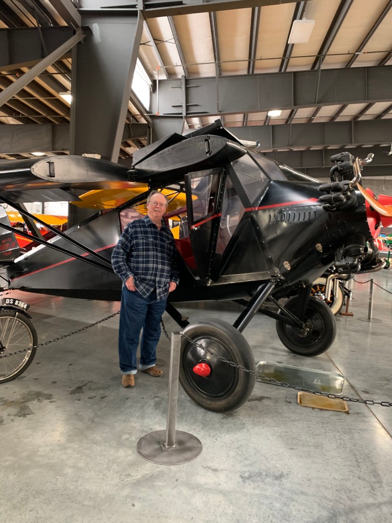 Today was supposed to be a rest day, but I ended up putting too many city miles on my chassis. At the Western Antique Aeronautic and Automotive Museum, W.A.A.A.M., I stood and strolled and chatted with three mature volunteers and a bit with the founder Terry. I was there for human interest, leaving the nuts and bolts to JG to understand. JG loves antique planes, but the dozens of aircraft and motor cars looked alike to me. I am all over the difference between a yew and a hemlock, or a woodchuck and a hedgehog, or a biscuit and a scone. But good lord, the refinements of a Piper Cub, an American Eagle Eaglet, a Cessna Jenny or a Buhl Bullpup escape me. I enjoyed the stories the volunteers told me about daring flights, harrowing crashes, man in machine versus Nature. “Glacier Pilot”, by Beth Day, was recommended by Felix, in case anyone else prefers the adventure to the mechanics of aviation.