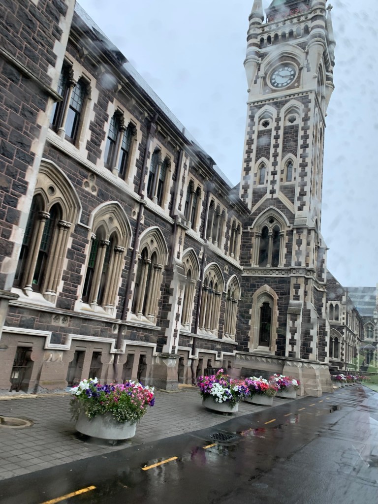 Settled in 1848 by Free Church of Scotland worshippers, “Dunedin” means Edinburgh in Scots Gaelic, or Edwin’s Fort.  With the exception of the red light district, called The Devil’s Half Acre, Dunedin gleams with clean streets, gingerbread Victorians, prosperity and free parking. It’s built on several hills rolling between the Sound and the South Pacific Ocean. Here almost nothing is in Māori. They have a beautiful 1871 train station which hosts only tourist trains once or twice a day.