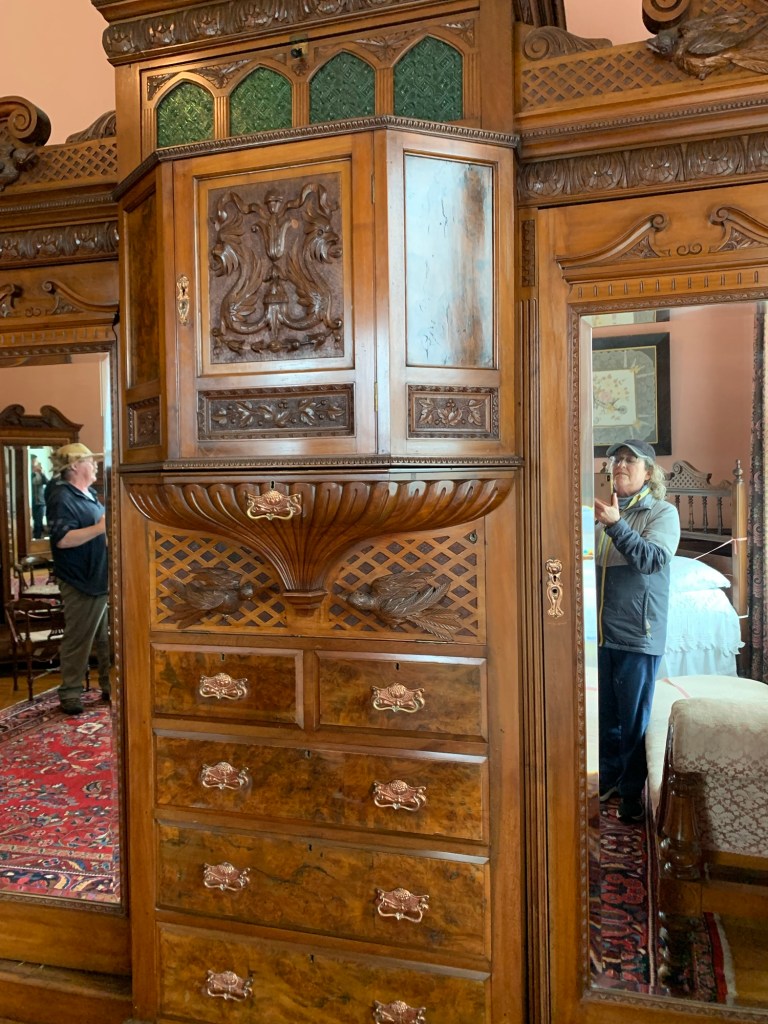 I notice Olefin carpet and other practical, non- Victorian details.  Running tours and hosting events: it’s a living.